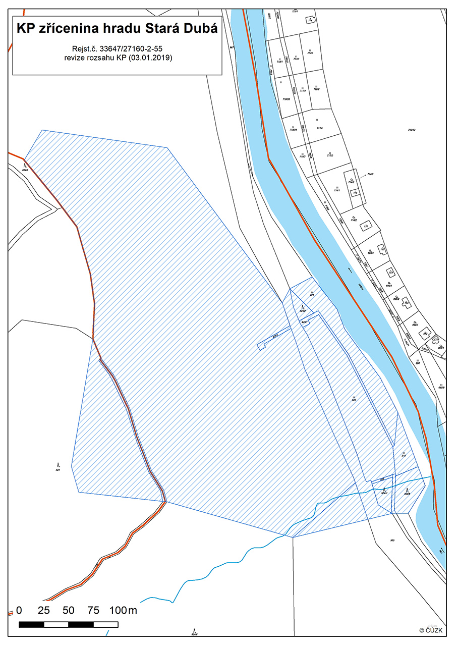 Zákres kulturní památky do současné digitální verze katastru nemovitostí.